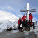Bei der Eisseehütte trafen wir ein paar Einheimische die uns dann eine Spur bis zum Gipfel spurten. Peter war moralisch schon etwas angeschlagen aber er gab nicht auf. Jetzt hieß es Höhenmeter machen. Um 14:00 Standen wir auf dem Gipfel von der „Weiss Spitze“ 3300m. Es war herrlich. Traum Wetter. Sonne. Unten war der Nebel und es war fast überirdisch.