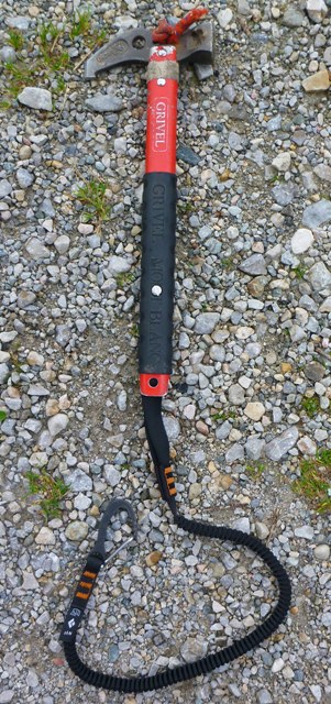 Mein Grivel Hammer hat eine Schraube welche ich zum befestigen der Schlaufe verwende. Die Schraube habe ich mit Schraubenkleber Loctite (Hochfest “Grün”) eingeklebt damit ich diese nicht verlieren kann. Die Lösung ist aus meiner Sicht perfekt da es keine Störung am Ende des Stiles gibt.