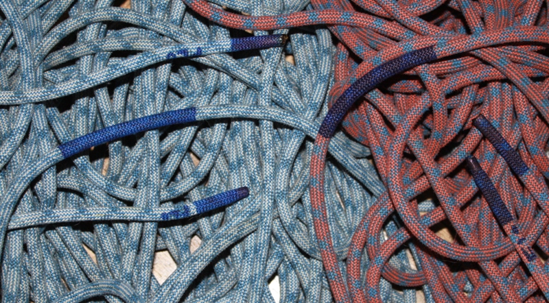 Zu Beginn wie das mit dem Edding 3000 noch nicht so publiziert wurde habe ich bei meinen Seilen auch oft einen Faden eingenäht. Hat auch super funktioniert, ist aber ganz schön viel Arbeit und visuell nicht so gut zu unterscheiden, wie eine 10cm Markierung. Nützlich ist auch noch der Name oder ein Kurzzeichen auf den Enden