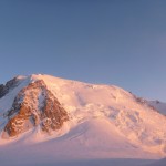 Bei Sonnenuntergang war alles fertig. Genügend Tee, ein fertiges und stabiles Zelt und auch für ein gutes Abendessen hatten wir Zeit. Am nächsten Morgen war das Wetter leider nicht mehr so perfekt, aber der Vormittag sollte halten. Somit entschieden wir uns für eine weitere Tour am Tacul. Wir wählten eine frontale direkte Linie, die „Contamine Mazeaud“. Frontal betrachtet schaut die Linie ganz schön wild aus, aber die eigentliche Kletterei ist gemütliches Eispickeln in herrlicher Umgebung.