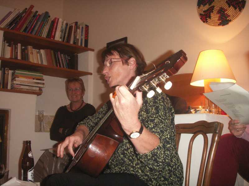 Dann übernahm Ute die Vorherrschaft und es wurde musiziert und gesungen. Ich musste mit dem kleinen Racker, Pauli, von Jörg kämpfen und ihn hochschupfen bis er im Eifer des Gefächts die Faust gegen einen Kasten stieß – Gott sei dank – dem Kasten ist nichts passiert