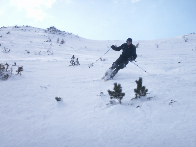 Wir hatten herrlichen tiefen und weichen Schnee. Voller Genuss fuhren wir bis zur Steilstufe, wo wir wieder die Ski tragen mussten.