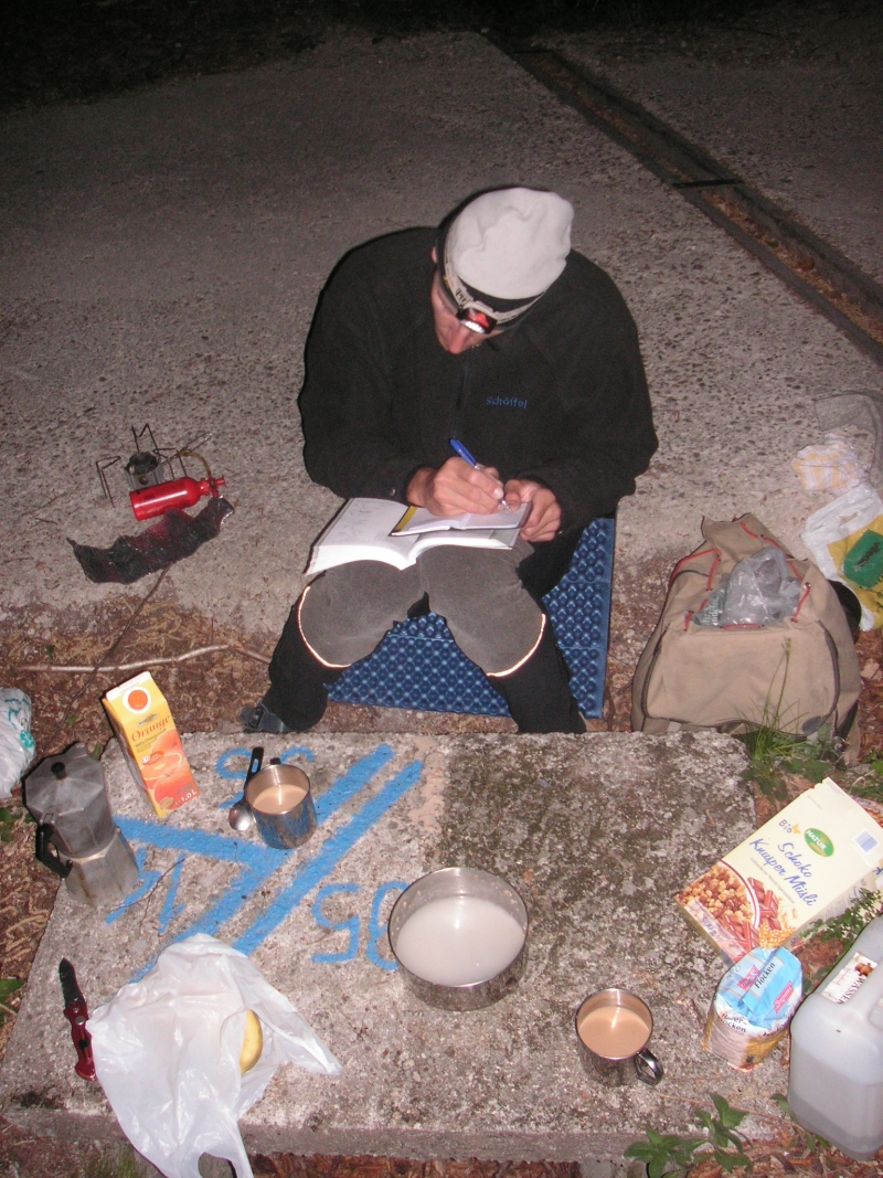 Martin&Conny gaben uns einen Geheimtipp für die erste Übernachtung. Mit den zweien wollten wir uns auch am nächsten Tag treffen. Wir suchten uns ein nettes Platzerl im Wald und legten uns dort hin. Herrlich! Frische Luft und Temperaturen um die 15°C in der Nacht. Am nächsten morgen standen wir gemütlich auf, frühstückten und schmökerten im Kletterführer. Den ersten Tag wollten wir richtig gemütlich angehen.
