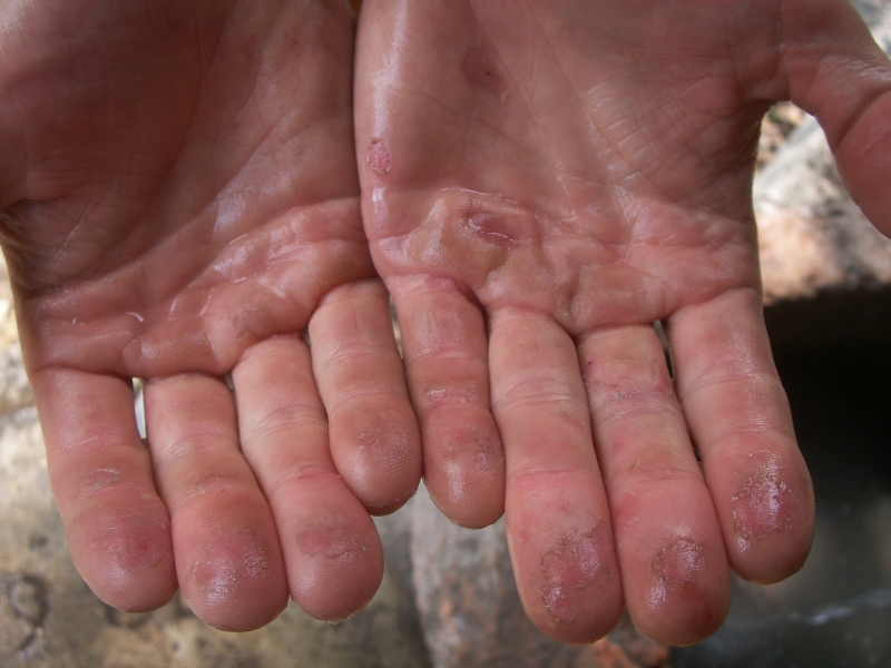 Unsere Füße schmerzten bereits, weil gerade in der Platte die Füße viel mehr beansprucht werden. Am Ausstieg zogen wir endlich die Kletterschuhe aus. Wir verabschiedeten uns von zwei Kletterern, die wir in der Nachtbartour kennen gelernt hatten und gingen zurück zum Auto.