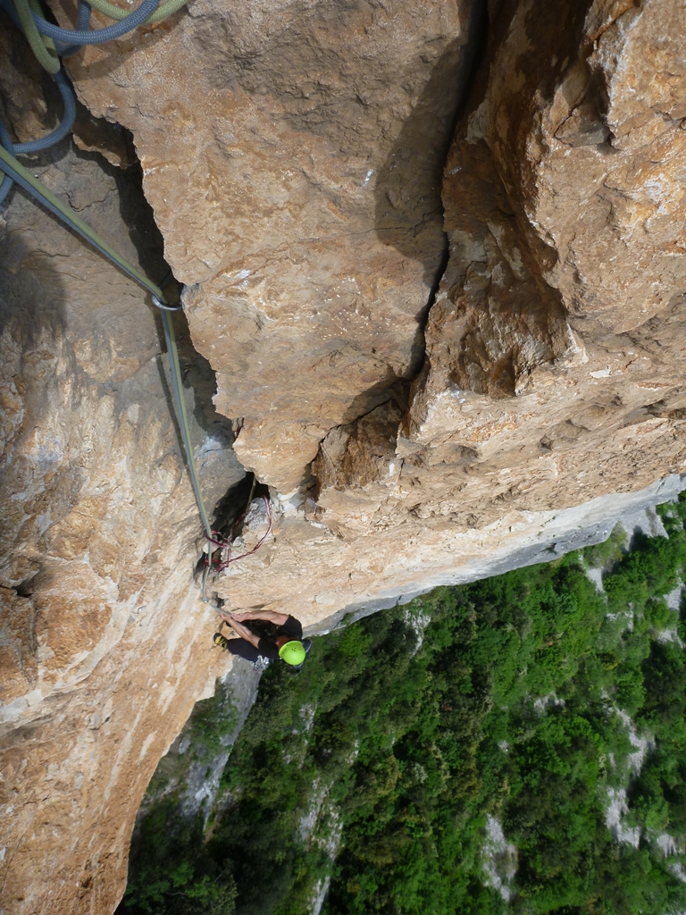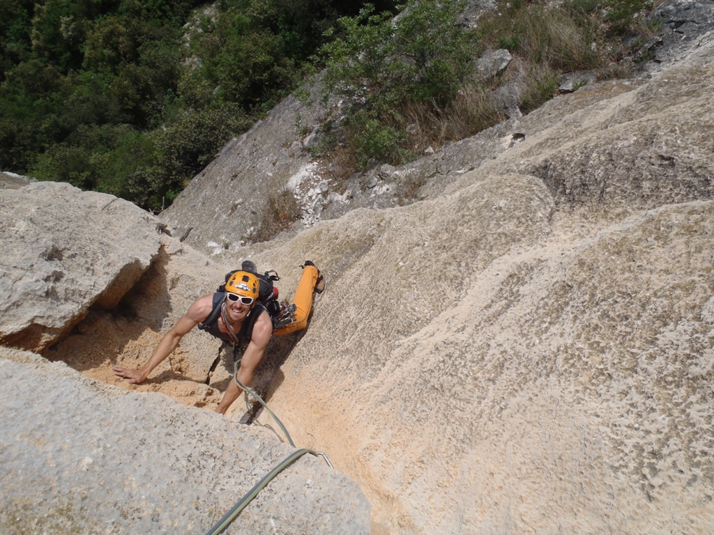 Nach einem guten Frühstück verschlug es uns nach Mandrea. Alfred wollte dort eine Tour gehen, die ihn schon lange juckte. Die Fiore Di Corallo. Laut Topo liest sich das Ding ganz schön knackig, vor allem was die Absicherung betrifft. Ein paar Schlaghaken an neuralgischen Punkten und der Rest clean und schlecht absicherbar. Also eine richtige Tour mit dem sogenannten Thrill wie es Hr. Alfred zu sagen pflegt. Alfred kannte ungefähr den Weg und so waren wir ziemlich bald am Einstieg der Tour.