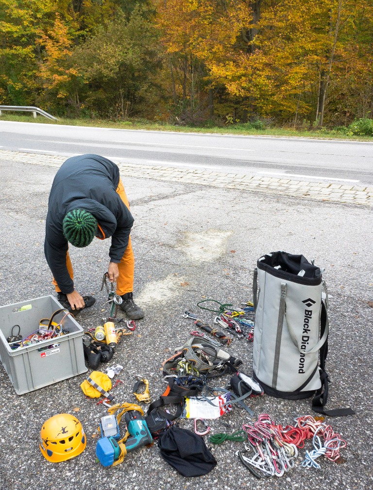 Irgendwie gefiel mir das kleine Projekt und ich dachte mir, wenn Willy mich materialmäßig ein wenig unterstützen würde, dann lass es uns probieren. Gesagt getan, fixierten wir einen Termin. Am 20. Oktober trafen wir uns um 07:00 in Baden und fuhren gemeinsam ins Höllental. Zusätzlich wurden wir von Martin Jager, der damals beim Götzensteinprojekt schon dabei war, unterstützt.
