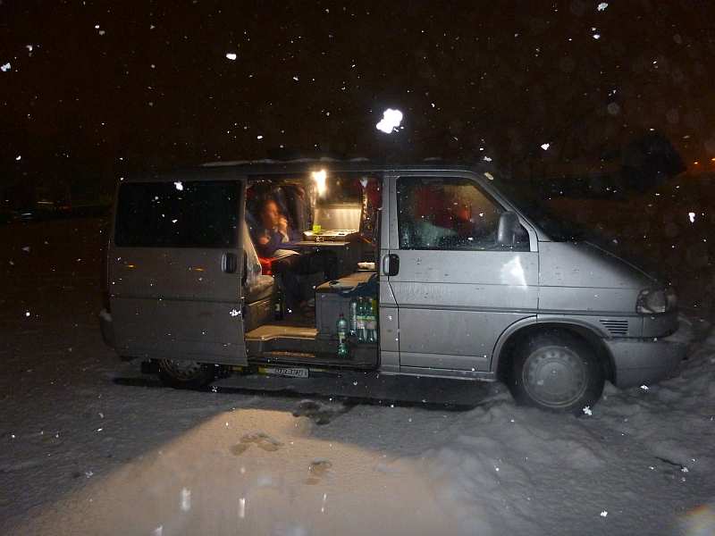 Freitagnachmittag, endlich ging es los, wohin wussten wir noch immer nicht. Ich fuhr zu Hubsn und holte ihn von zuhause ab. Unser geplantes Reiseziel war das Aostatal (Grant Paradiso – Nähe Montblanc). Der starke Schneefall machte uns jedoch gleich am Anfang einen Strich durch die Rechnung. Es war nämlich ein erhebliches Verkehrschaos und teilweise war die Südautobahn gesperrt. Somit starteten wir über die Westautobahn und über Innsbruck. Bevor wir weiterfuhren telefonierte ich mit Peter (www.kunig.at). Peter berichtete mir von sehr guten Verhältnissen der Hängenden Gärten. Hubert musste ich nicht lang überreden und 40 Minuten später waren wir bei Peter und Ruth und tranken ein oder zwei gemeinsame Bier. Dann checkte uns Peter seine Couch und wir hatten ein warmes Schlafplatzerl. Danke!