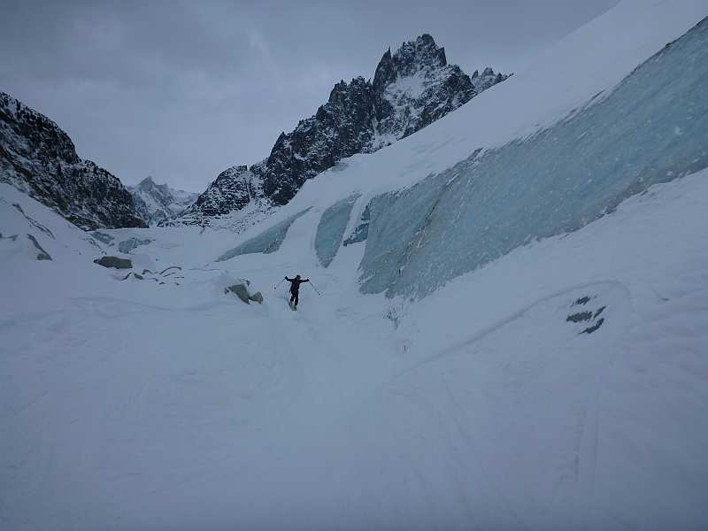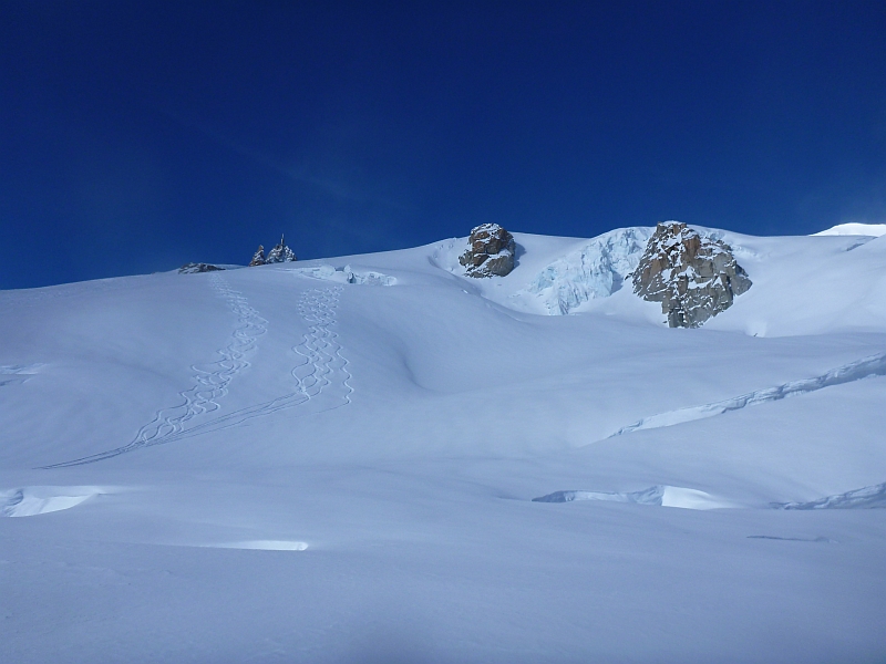 Als wir zur Gondel kamen war unsere Nummer bereits dran. Perfekt. Rein in die Gondl und rauf auf die Aiguille du Midi. Einfach geil. „Powder“ bis zur Hüfte und perfektes Wetter. Ein kleiner Traum ging in Erfüllung. Das Vallée Blanche zu fahren. Und das bei solchen Bedingungen. Aber es kam noch besser. Denn die Abfahrt war bis ins Tal möglich und um 13:00 waren wir wieder unten und somit ging es ein zweites Mal hinauf. Die Bedingungen waren noch immer super.