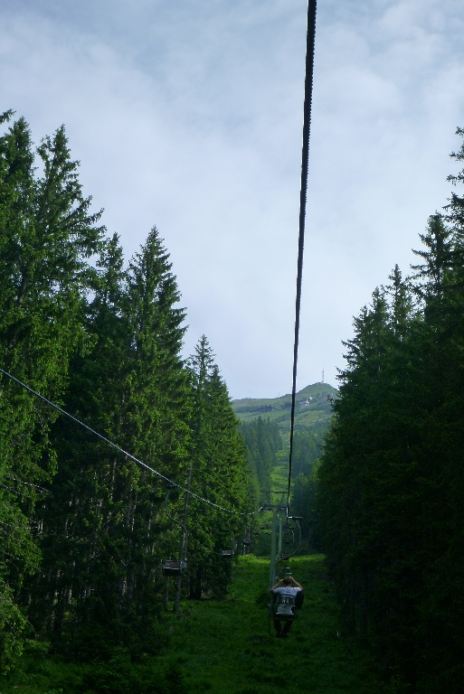 Gernot ging klettern und stand sehr zeitig auf. Wir chillten und konnten uns so richtig ausschlafen, pah ist das Fliegerleben geil. Nach einem gemütlichen Frühstück ging es Richtung Präbichl zum Polster 1910m. Dort checkten wir den spannenden Landeplatz und organisierten uns eine Liftkarte. Der Lift ist noch ein klassischer Einer-Sessellift mit Holzbrett und oldschool-Bügel. So wie früher. Die Bergfahrt kostet 6€ und die Talfahrt bei nicht fliegbaren Bedingungen ist „gratis“. Der Lift ist nur bei gutem Wetter und am Wochenende (+Feiertage) in Betrieb. Oben angekommen checkten wir den S-W-Startplatz. Im Moment gab es faktisch keinen Wind. Ein Schirm war bereits ausgelegt und wir schauten uns den Berg etwas genauer an. Da wir noch recht früh dran waren, rechneten wir mit dem ersten Flug auf jeden Fall mit einem Abgleiter.