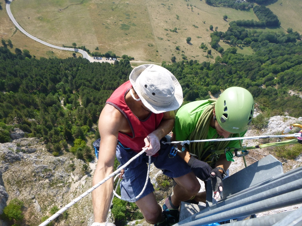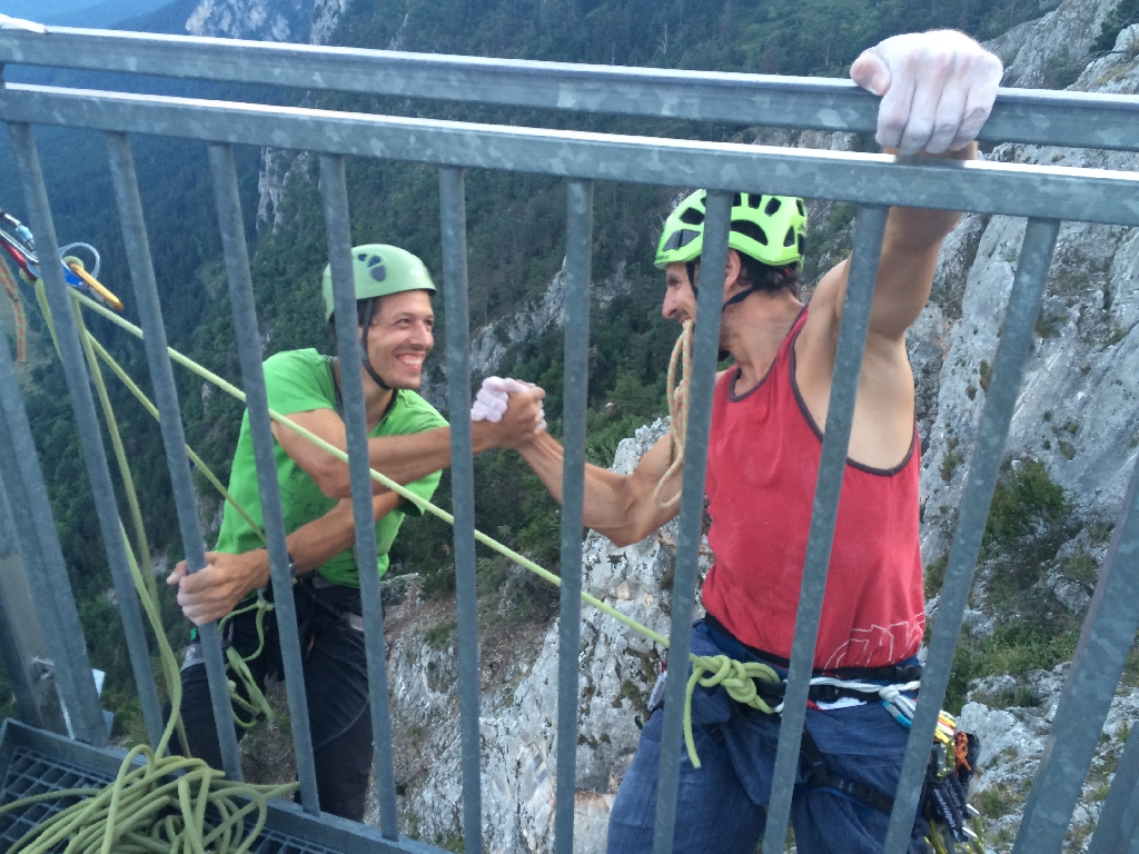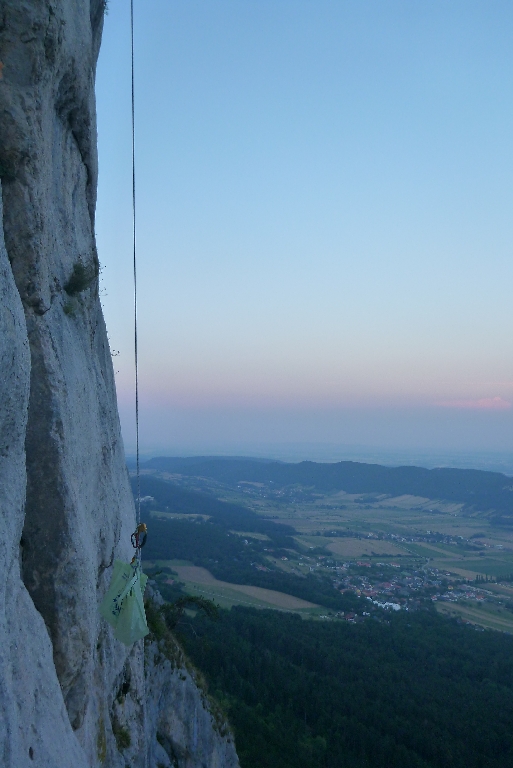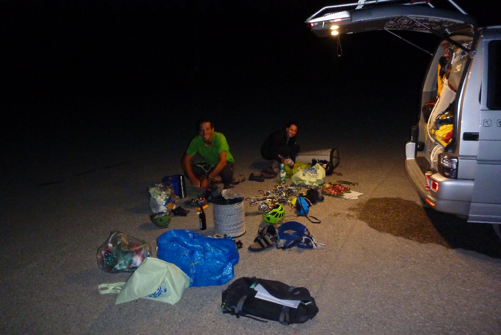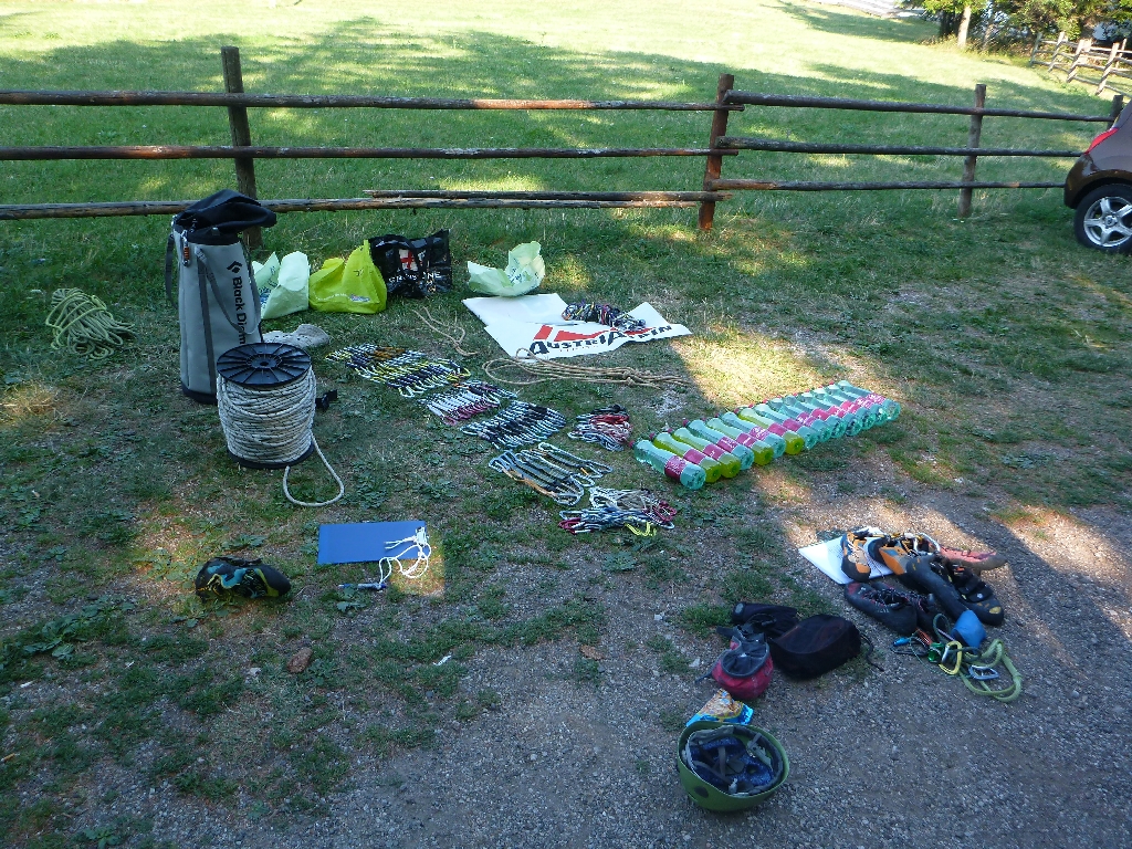 Gesagt getan, in zwei Wochen hatten wir faktisch alles umgesetzt. Peter von Austrialpin borgte uns einige Schlingen und von Flo bekamen wir eine 200 Meter Statikseilrolle.