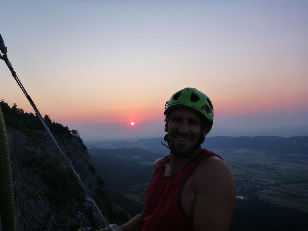 Die Hohe Wand gehört irgendwie zu meinen Hausbergen. Mein Lieblingssektor ist die steile Sonnenuhrwand, welche direkt unter dem Skywalk hochzieht und eine herrliche Arena bietet. Bei der Wand handelt es sich um eine Ostwand welche am Nachmittag keine Sonne mehr hat. Somit kann auch im Sommer gut dort geklettert werden. Bei Südwind und Thermik ist der Ausstieg meistens sehr windig und der Stand direkt am Skywalk auf der Spitze sorgt bei den Besuchern immer für Aufregung und beim Kletterer für ein luftiges Gefühl.