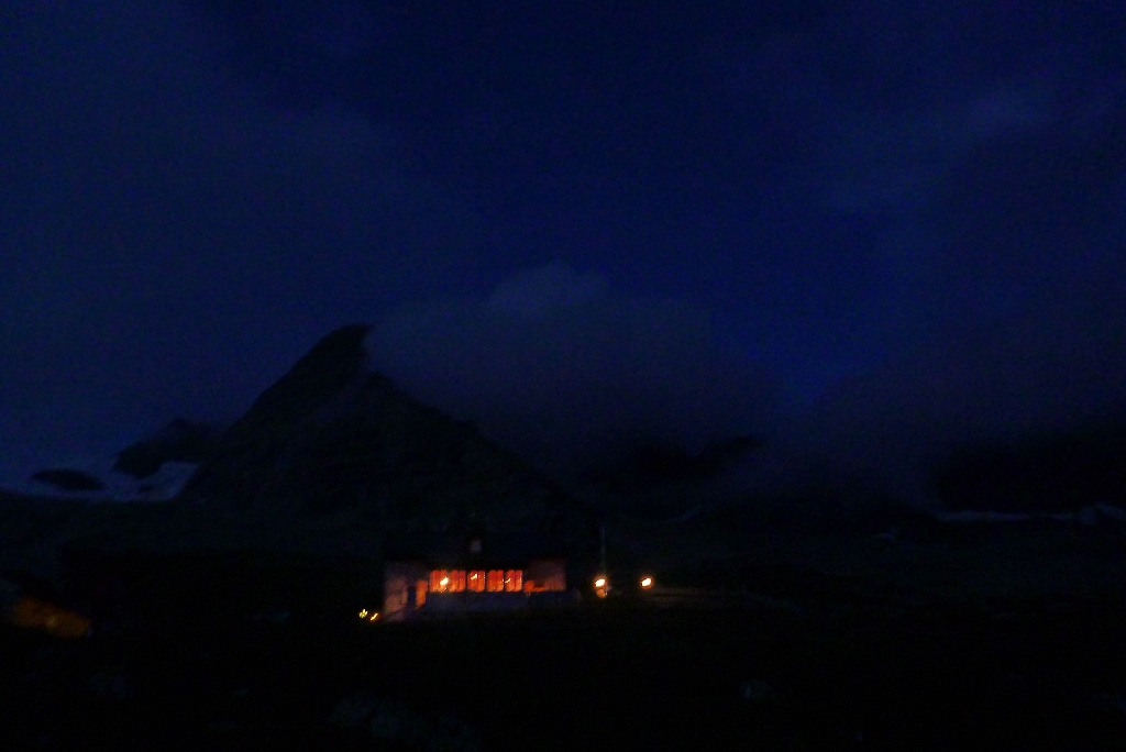 Die Hütte sollte unser Stützpunkt für die nächsten zwei Tage werden. Beim Zustieg war das Wetter noch ein wenig wolkenverhangen, was jedoch nicht störte. Pünktlich zum Dunkelwerden waren wir oben und benötigten keine Stirnlampe. Gutes Timing, dachte ich mir. Beim Zustieg konnte ich das erste Mal meine neuen Schuhe, Scarpa Rebel GTX testen. Leider musste ich feststellen, dass die Knöcheln ein wenig drückten, aber machte mir noch keine weiteren Gedanken.