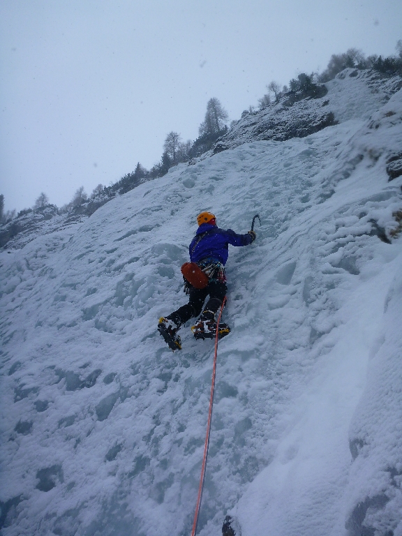 Irgendwie bildete ich mir ein, dass ich da schon einmal war, aber ich konnte in meinem Tourenbuch nichts finden. Naja werde auch schon alt. Nach einer kalten Nacht starteten wir am nächsten Morgen Richtung Wasserfall. Eine Seilschaft war bereits im Fall, aber diese entschieden sich für den Linken Einstieg. Somit waren wir uns nicht im Weg. Oben vor den Leichten Längen haben wir uns dann wieder getroffen und sind über den tief Winterlichen Sommerweg wieder abgestiegen.