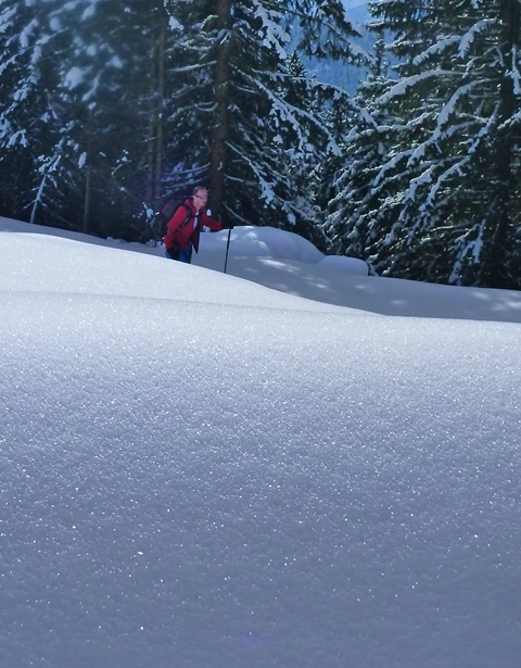 Wir zogen unsere Spuren und freuten uns über den Schnee. Gerade das letzte Stück war ein wenig mühsam, weil einfach die Grundlage fehlte. Aber mit ein paar vorsichtigen Schwüngen waren wir wieder auf der Forststraße, die uns zu unserem Auto führte. Dort kochten wir uns ein paar Nudeln und halfen einem jungen Pärchen, das mit dem Auto feststeckte. Danach ging es in die Drautalperle, ein Erlebnis-Hallenbad, um die müden Muskeln wieder fit zu machen.