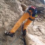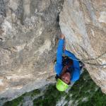 Wir hatten einen kompletten Satz Friends (0,75; 2; doppelt), inkl. den kleinen C4´s rot, gelb, lila, kleine und mittlere Keile und drei mittlere Wild Contry Hex mit. Teilweise hatten wir Längen wo das Material faktisch weg war :-). Die Stände sind mit zwei guten Bohrhaken versehen (nicht lt. Topoe) und der Rest ist teilweise sehr clean. Hin und wieder ein Schlaghaken oder Holzkeil. Sonst relativ ernste und Alpine Tour aber wirklich gute Kletterei und ein bisschen technische Kletterei :-)!