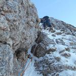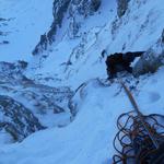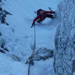 3 Seillänge: M3 40 Meter (Eis hatten wir keines WI 2 (möglich lt. Topo Hubert&Markus) (Stand am Kaiserstein oder am Plateau)