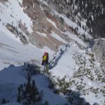Die Linie befindet sich im linken Teil von der Breite Ries ungefähr 100 m über einem markanten Kamin. Der Kamin liegt hinter der ersten markanten Wand, welche man umgeht. Beim Einstieg ist bei einem roten Ausbruch. Man steigt über rechts ein und klettert direkt über eine Rippe welche Gras durchsetzt ist. Der erste Stand - nach ungefähr 50 m – (Schlinge um Felszacken und einem V-Haken im gefrorenen Gras. Die Linie geht direkt weiter und nach 55 m beginnen die ersten deutlicheren Felsen. Von hier nach rechts (diagonal) in die Schlüsselstelle - ungefähr M3. Dann ein wenig links und direkt noch oben durch die Stufen auf eine größeres Plateau mit Köpfel, wo sich der dritte Stand befindet. Vom zweiten Stand wäre es logisch direkt zu klettern dort sind aber lockere Blöcke (VORSICHT!!!). Die vierte Länge führt direkt durch eine enge Rinne und dann folgt ein Grat über die verschneite Latschen. Von dort nach rechts zum letzten Türmchen. Der vierte Stand. Von hier quert man hinter dem Turm um nach einigen Metern rechts oben auf ein kleines Plateau auszusteigen. Weiter zum Gipfel durch die Felsen ca. 45 min. Die Tour ist optimal für Anfänger des Mixkletterns geeignet. Abzusichern ist die Line mit Haken, Schlingen, Friedns und Keilen.