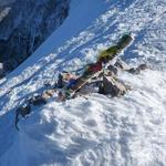 Die Verhältnisse waren gut. Es gabe zwar keine Spur und teilweise ein wenig Spurarbeit aber in Summe ging es relativ flott. Oben wären Steigeisen gut gewesen. Ich hatte zwar meine guten Eisen mit (Wasserfall Eisen) wollte dieser aber nicht für den kombinierten Fels hernehmen. Aus diesem Grund war ich oben etwas langsam aber in Summe ging es gut zu "klettern". Schöner Anstieg... wie immer!
