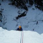 Sehr schöner Eisfall der recht Südlich exponiert ist. Bei gutem Wetter ist der Fall recht stark der Sonne ausgesetzt. Am besten bei bewölktem Wetter. Abseilpiste direkt rechts neben dem Fall (auf den Fall schauend). Die erste Seillänge sind wir frei gegangen. Der untere Teil hatte gutes Eis aber war nicht ganz so leicht. Sehr sprödes Eis und oben Schnee Eisgemisch. In Summe ein Top Eisfall bei besten Verhältnissen!