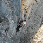 In Summe eine echt gute Tour! Bis auf das Bandl aber auch hier fester Fels. Sicher die Beste Tour in dem Abschnitt! Die Schwierigkeit ist ehrlich bewertet und die 6er sind nicht geschenkt. Auch wenn ich noch nicht in Hochform bin war es richtig anstrengend. Die 8er Länge ist super Plattig und super zach! Eine typische "Thomas Behm" 8- Plattenstelle eben "superzach".
