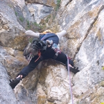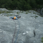 komme bei der Schlüsselstelle immer wieder ins Schwitzen und hatte diesmal nur sehr wenig Material mit. Die Folge waren Runouts und ein paar Angstschweiß Tropfen *gg* - Echt geiler rauer Fels!!!