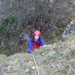 die erste Hälfte sind wir seilfrei gegangen. Oben in der Platte und "Schlüsselstelle" haben wir dann angeseilt. Die letzten zwei Seillängen sind echt schön der rest ist eher eine wanderei! Stände und zwischen Haken gebohrt.