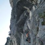 eine spitzen Tour in besten Fels. Die Tour ist jedoch nicht überbewertet und hat ein paar echt heftige Kletterstellen. In der ersten Seillänge ist die 7er Stelle eine ganz schön knifflige Stelle. Die 8+ Seillänge ist sehr zach. Der Überhang hat einen sehr Zachen Zug und danach kommt ein übler Riss den ich so "richtig frei" nicht zusammengebracht habe. Mit einem 0,25 Friend hab ich mich dann drübergezogen. A0 mit Bohrhaken ziehen ist recht schwer möglich. Oben sind wir die 8- dann übern Osterhasistand ausgewichen. Von diesem (Osterhasistand) sind wir dann direkt auf´s Top (spitzen Seillänge!) In Summe eine super Tour die ein paar sehr knackige Stellen hat. Zum A0´len würd ich einen 0,25 (grau BD) Friend mitnehmen!