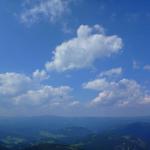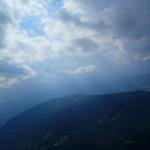 Es war zwar ganz schön warm aber in den ersten Zwei Seillängen hat uns der Regen getroffen. Eh kloar. Waren zuerst 1h Thermik Fliegen. Der Regen war aber warm und auch der Fels sehr angenehm. Anfangs ist der gar nicht nass geworden. Zum Glück waren die leichtern Längen im nassen überhaupt kein Thema, ganz im Gegeteil. Bin ohne Regenjacke im Regen geklettert und war irgenwie echt lässig. Wenn alles nass ist gewöhnt man sich dran und auch der Schuh hält relativ gut. Die vielen Bolts machen die Sache auch sehr entspannt. Dann war der Regen vorbei und 10 Minuten später war alles wieder trocken. Saugeil... leider die Cam vergessen, die Stimmung war ein Hammer. Wolkenfetzen, Regenbogen, Sonnenfenster ...