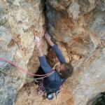 sehr schöne 1. Seillänge. Ein zacher Aufsteher ganz am Anfang der Linie. Der Rest ist Riss und Verschneidungskletterei wie im Bilderbuch. Die zweite Seillänge geht gemütlich zum Stand.