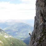 Klassische Felsfahrt! Sehr beliebt und oft begangen. Leichtester Anstieg zum Kantenkoepfl, obwohl sich kaum jemand die Zeit nimmt, die 20 Meter zum Gipfel zu Steigen, um sich eine verdiente Rast am schon legendaeren Laerchenbankl zu goennen.