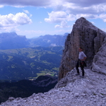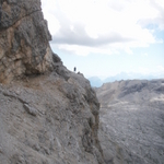 (Klettersteig Weg quert oben den Ausstieg der Tour)!