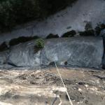 xxxx der Beginn ist ein wenig sandig und auch nicht leicht. Wenig Möglichkeiten zum Absichern. Eine 4mm Sanduhr haben gerade die gefädelte Schlinge gehalten und ein wenig die Moral verbessert. Ist man durch den Kamin geht es über herrliches Gestein hinauf zum Stand (Ring). Von dort sehr ausgesetzt zum Gipfel! Eine wahnsinn´s Tour. Traumhaft!