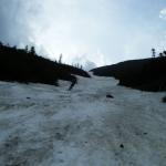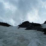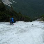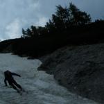 Der Krönende Abschluss! Nach unseren Touren stapften wir noch mal Richtung Einfahrt Langer Mann. Den Wettlauf mit dem Gewitter haben wir gewonnen. Bei ein wenig Regen und Hagel fuhren wir über die Steilrinne bis zum Ende. Auch wenn die Oberschenkel schon brannten war die Abfahrt bei den tollen Firnverhältnissen einfach genial!
