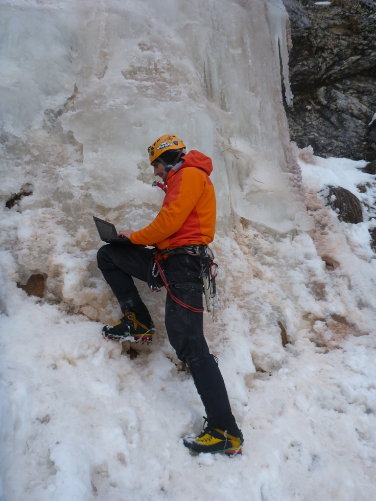 Den Härtetest hat die Jacke gut bestanden. Schließlich war die Linie waschlnass und ganz schön schweißtreibend. Und das Bohren und Arbeiten in der Wand waren auch ein spezieller Härtetest. Zumindest war die Jacke danach nicht mehr neu. Ein paar Tage später ging es auf den Schneeberg, wo die Bedingungen noch etwas rauer und kälter waren.