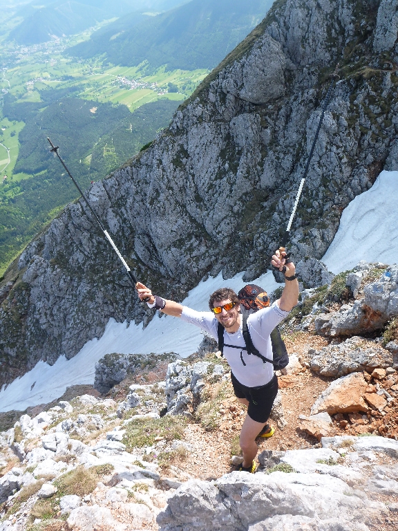 Seitdem ich mit einem Fuß jetzt fix in der Hike&Fly-Szene bin und viele Kilometer und Höhenmeter auch auf „normalen“ Wanderwegen unterwegs bin, gehe ich gerne mit Stecken. Der Stecken unterstützt einerseits beim Raufgehen und der Oberkörper kann so ein wenig mitarbeiten und beim Runtergehen entlastet er Knie und Beine und gibt mehr Stabilität.
